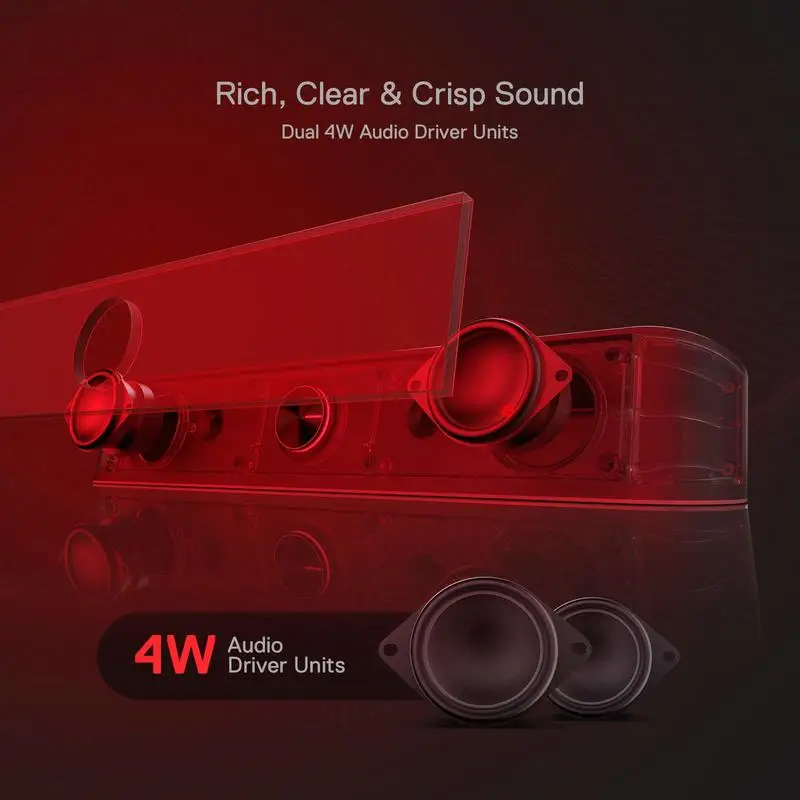 *Rich Sounds & Look – The first Redragon RGB sound bar has the upgraded driver that delivers clear and crystal sound quality combined with rich bass. 4 different backlit modes includes both dynamic and static glowing LED illumination.