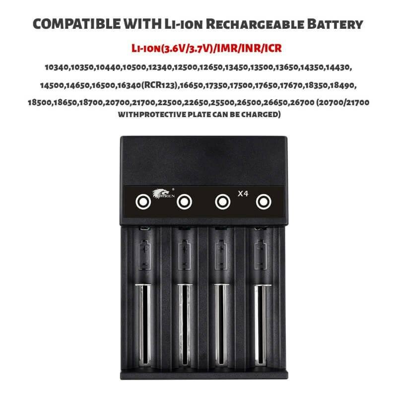 Liion/IMR/Lifepo4:10440/14500/16340/18350/18500/18650/26650 |